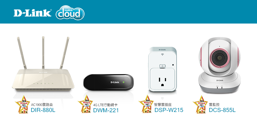 [台北訊,01142014] – 第七屆「科技趨勢金獎」名單今日(14日)下午正式揭曉,網通領導品牌D-Link友訊科技橫掃群雄,成為網通業界入圍最多、獲獎也最多的領導品牌,分別以廣受全球專業編輯熱議好評之AC1900旗艦機皇DIR-880L及DWM-221 4G LTE行動網路介面卡勇奪網路裝置類別人氣風雲獎與特別推薦獎;而在雲端應用類別中,亦以榮獲2014台灣精品獎之DSP-W215智慧雲插座與已奪得2014資訊月百大創新產品獎之DCS-855L HD旋轉式無線網路攝影機分別獲頒傑出科技獎及特別推薦獎。