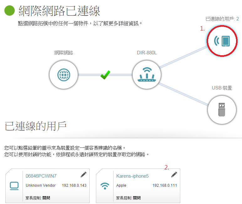 1. 請先將欲設定IP位址保留的所有裝置與無線分享器有線或無線連線成功,以便於設定畫面中,顯示於圖形化介面的