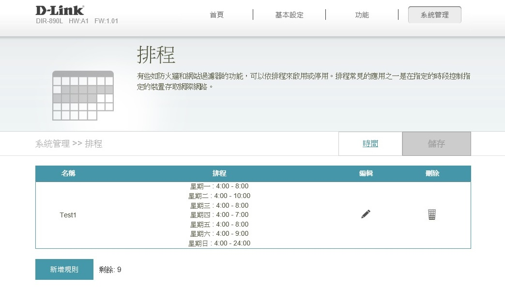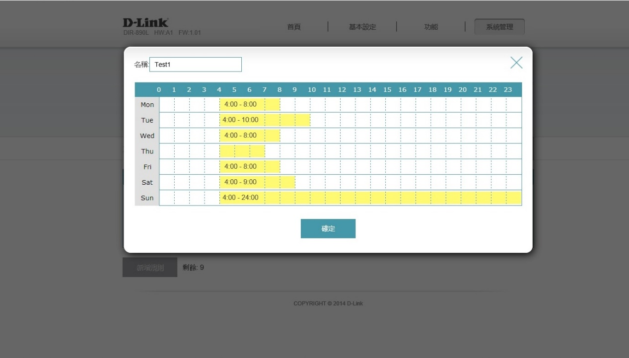 DIR- 890L提供家長控制功能,可搭配自訂時間排程,家長可用來限制底下有線或無線裝置存取網路