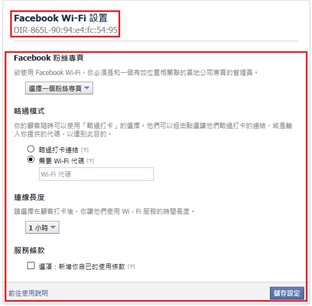 在點 Save and Pair Facebook Wi-Fi儲存設定。