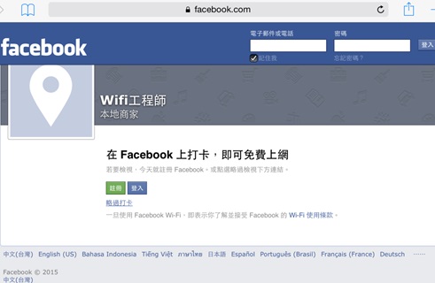 請參考此頁面,FaceBook WIFI服務