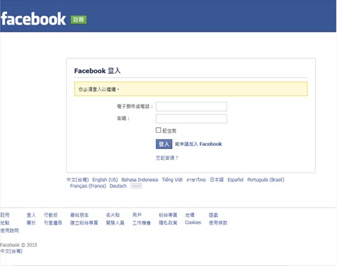 3.要出現 facebook.com網頁,如是此頁面,請先登入自己Facebook 帳號.