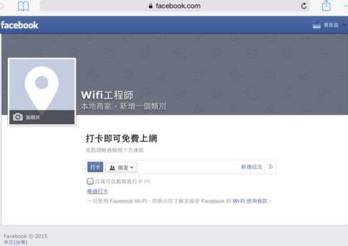 3. 就可以看粉絲專頁名頁,在點打卡,就可以開WIFI上網了。