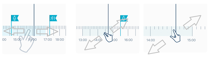 於時間軸左右滑動,可查看不同時間點的錄影資料;於時間軸上放大和縮小,則可查看更細的時間刻度。