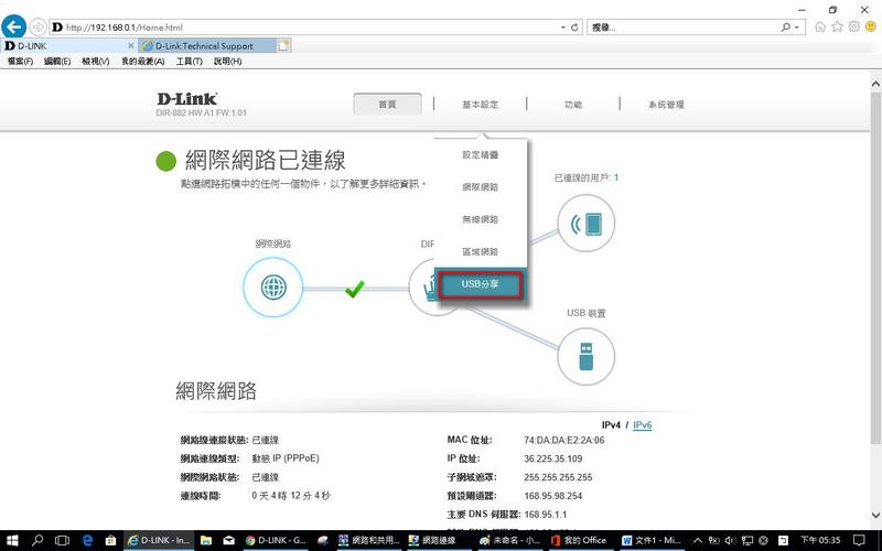 1.登入192.168.0.1設定頁面,點選『基本設定』-『USB分享』
