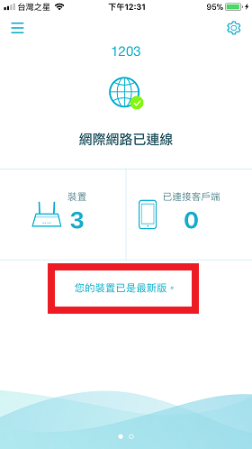 4. 更新完成畫面自動偵測裝置後,於APP主畫面即顯示您的裝置已是最新版。
