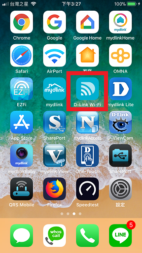 1. 請先將行動裝置WI-FI連線至分享器,接著點開D-Link Wi-Fi APP。