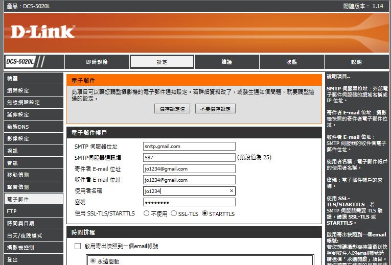 4-1若使用SSL-TLS/STARTTLS選擇【STARTTLS】,則SMTP伺服器通訊埠【587】(備註1)。