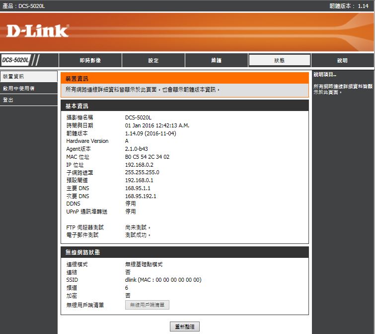 4-3點選【狀態】→若電子郵件測試為【測試成功】表示設定成功。