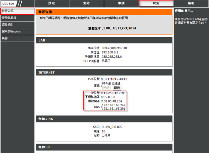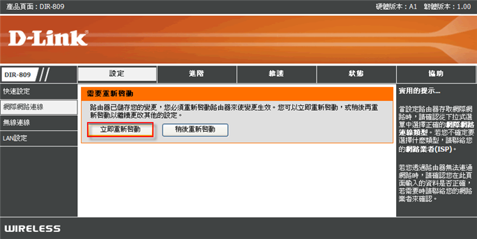 ◎DIR-809 硬體版本:A1 韌體版本:1.00