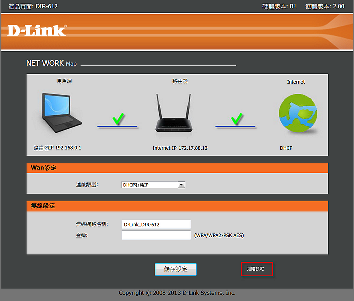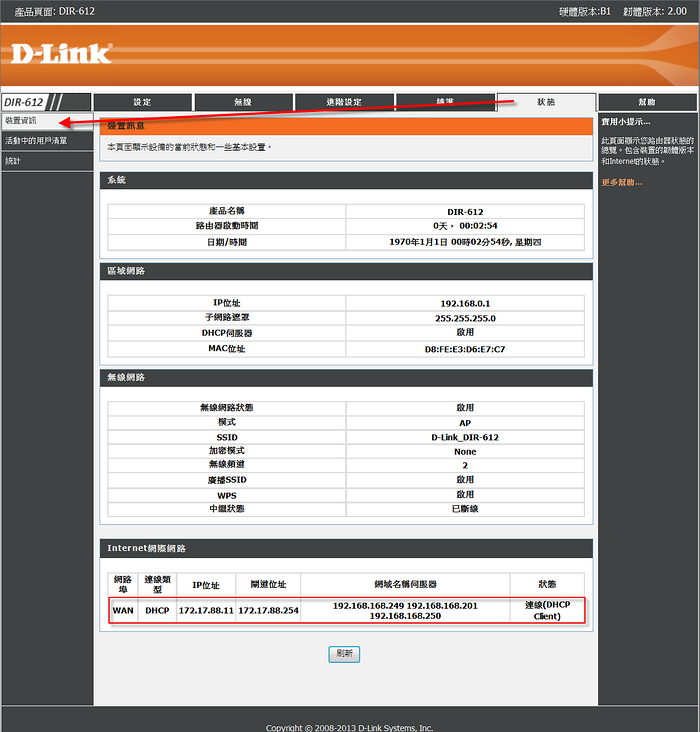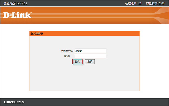 範列設備型號DIR-612 硬體版本:B1 軔體版本:2.00