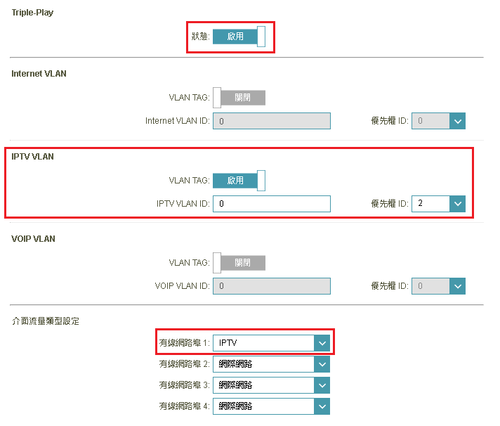 (2).【IPTV VLAN】 啟用【優先權ID】選 2