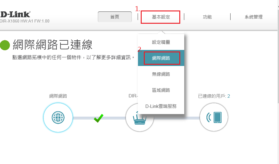 2. 選擇【基本設定】點【網際網路】