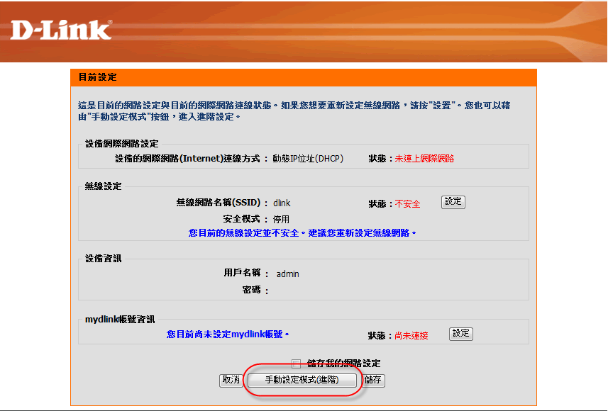 使用者名稱『admin』密碼『空白』按登入至DIR-605L的設定畫面
