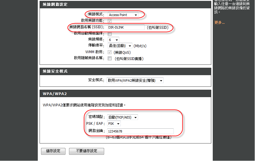 網路金鑰:您可自行輸入8~63字元(0~9 a~z)