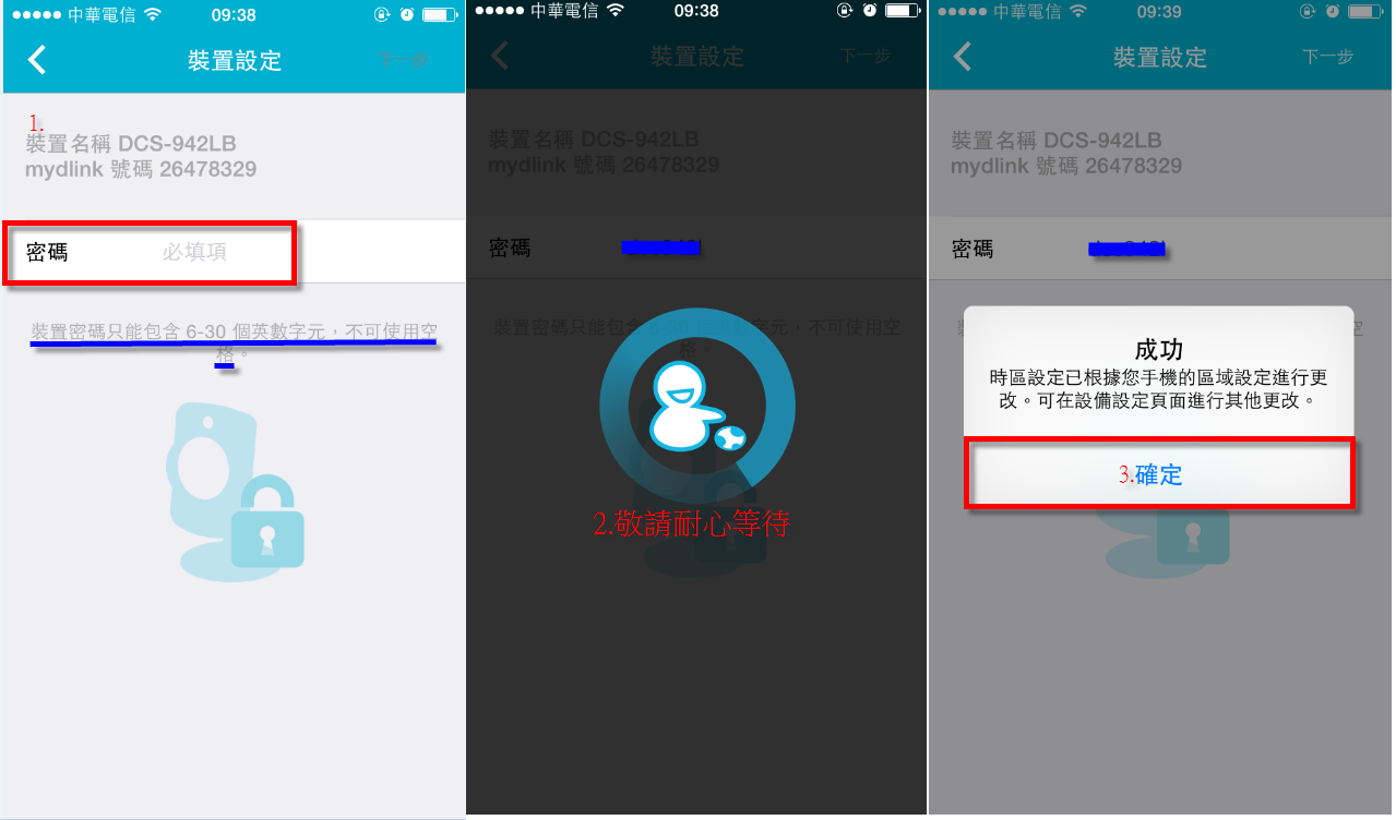 請設定攝影機管理者「密碼」→敬請耐心等候→成功後,請點選「確定」