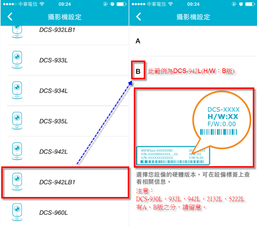 備註:注意DCS-930L、932L、942L、2132L、5222L有A、B版之分,請留意。
