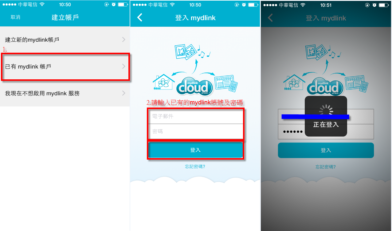 建立mydlink帳號,下列說明有分A.未有mydlink帳號及B.已有mydlink帳號