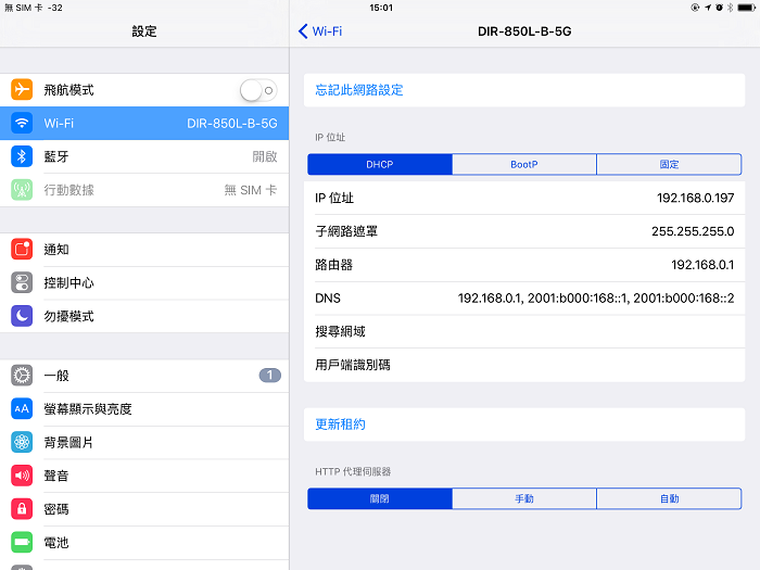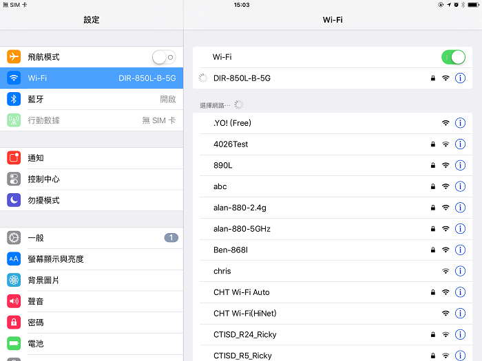IPAD 連線到DIR-822的無線網路,確認已連線.