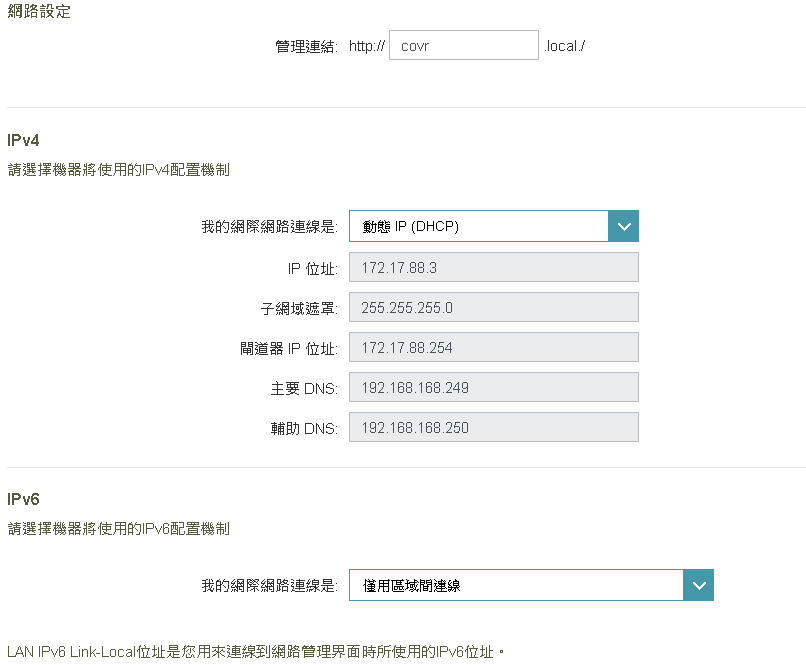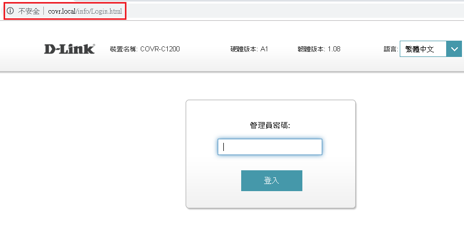 使用電腦打開網頁輸入網址:http://covr.local,並輸入管理員密碼即可登入設定畫面。
