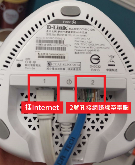 POINT A的1號孔接數據機,2號孔使用網路線接電腦。