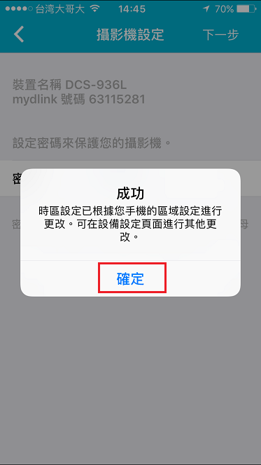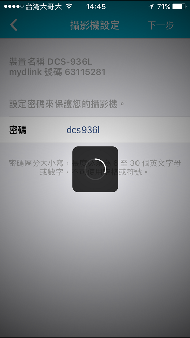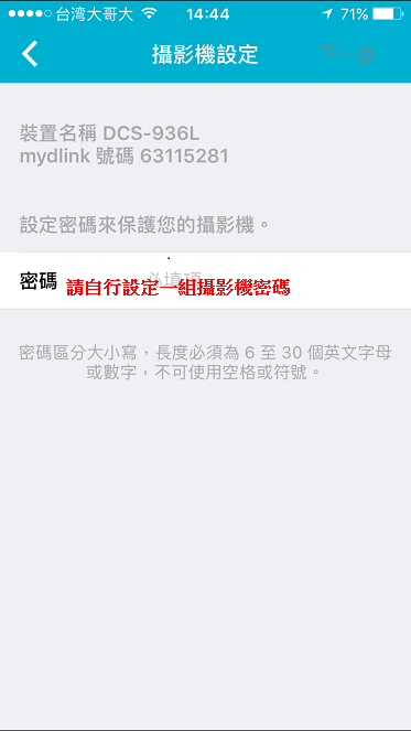 步驟八: 輸入您想要自訂的攝影機密碼後,按「下一步」