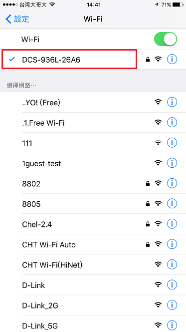 步驟六: 將手機的WIFI連線到攝影機後(請查看看攝影機底部的無線網路SSID名稱)