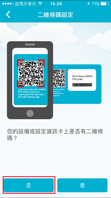 步驟二: 詢問是否有二維條碼,請點選「否」