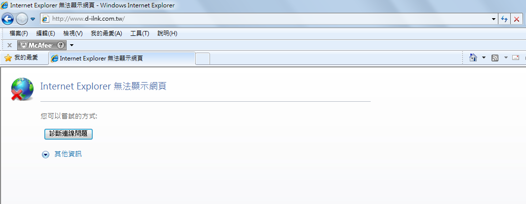 4.尚未啟動進階DNS服務時,當我們要找尋網頁時輸入了錯的網址http://www.d-ilnk.com.tw