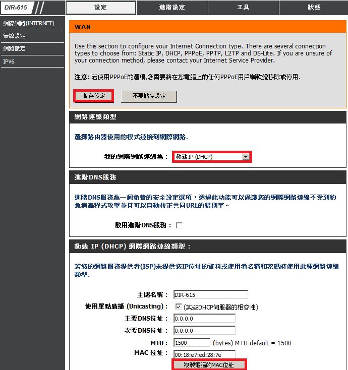 點選【複製電腦的MAC位址】,之後點選上方【儲存設定】按鈕