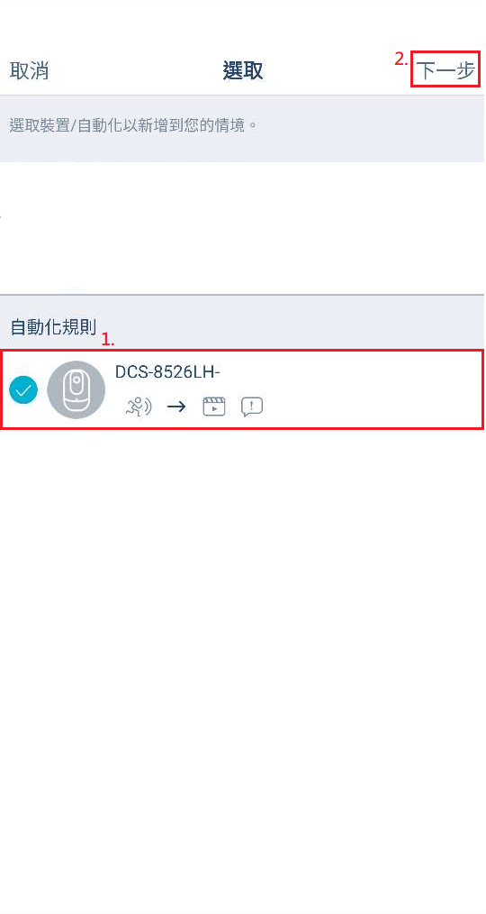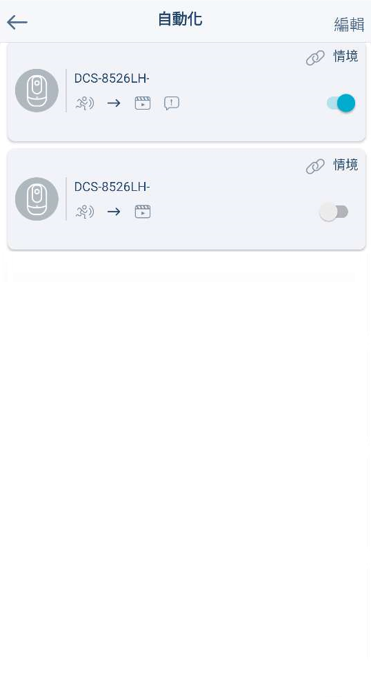 1. 先確認自動化是否已經設定兩個條件,設定方式請參考連結如何於新版mydlinkapp 2.0設定自動化功能。