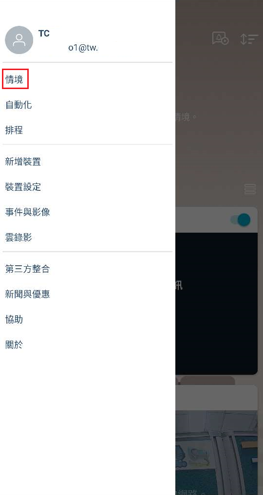 2. 回到首頁右上角點選 ≡ 多選單 > 情境 > 開始。