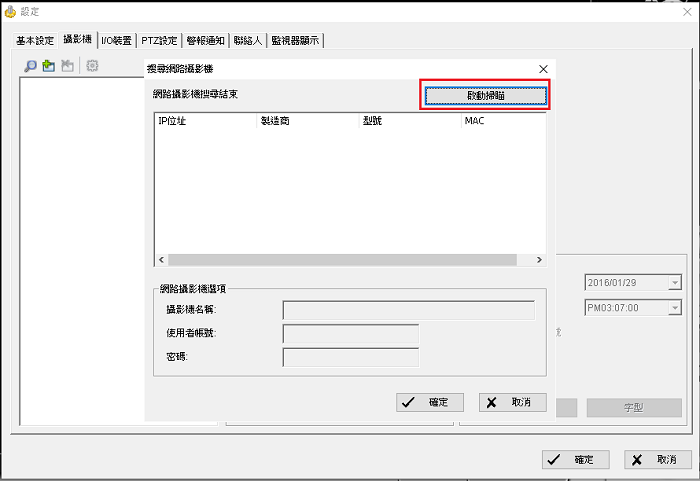 密碼: 預設為空白或已設定好的密碼。( 此使用者名稱和密碼是由攝影機設定登入時使用)
