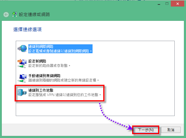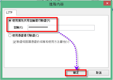以下VPN的資料皆為範例,設定時請依您實際的資料輸入