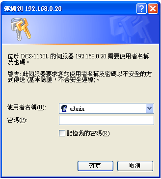1、用電腦登入攝影機的設定畫面,使用者名稱預設為「admin」無密碼