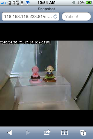透過Safari瀏覽器您可以選擇只監看影像,或是直接進入攝影機設定畫面。本文以iPhone 3GS版本4.3.3,搭配DCS-1130L韌體1.04為操作範例。