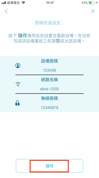 12.確認您設定之無線網路名稱及密碼正確後點選『儲存』