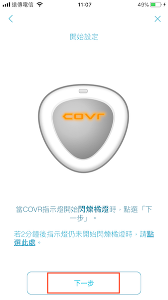 7.請確認指示為橘燈閃爍後點選『下一步』