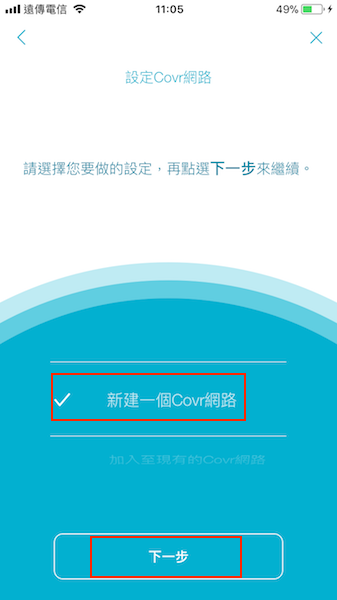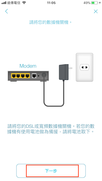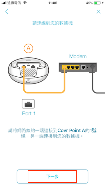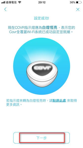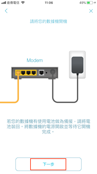 6.請確認網路業者提供之數據機及COVR已啟動電源後點選『下一步』