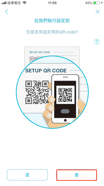 2.請掃描盒裝內附贈之網路設備資訊卡之QR-CODE,若找不到,請點選『否』自行選擇正確型號後在點選『下一步』