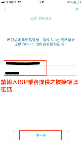 8.COVR會自動偵測您的網路連線類型,以下步驟為PPPOE連線,若您的網路連線類型為DHCP自動取得ip,此步驟即會自動略過