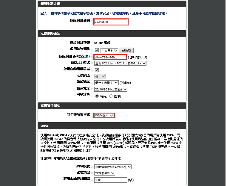 3.設定2.4GHz和5GHz頻段無線網路名稱(SSID):請改成您自己所設定的無線名稱