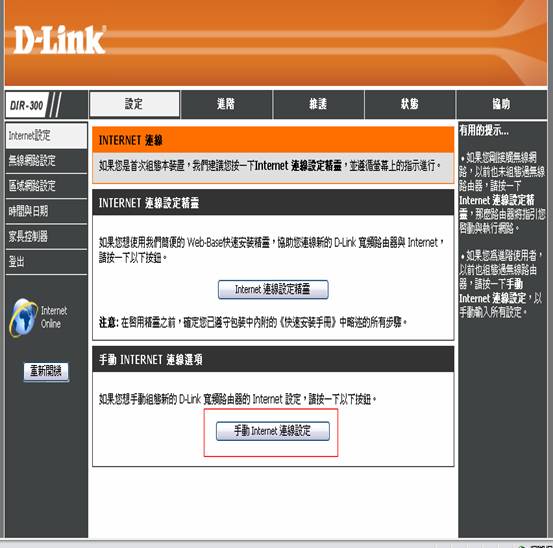 《步驟四》登入DIR-300設定畫面,開始連線上網設定