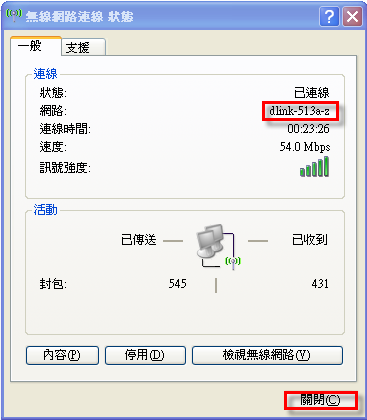 步驟四. 點選 連線到網路 並 搜尋 dlink-513a-z基地台名稱,並確認電腦是否已連接基地台。