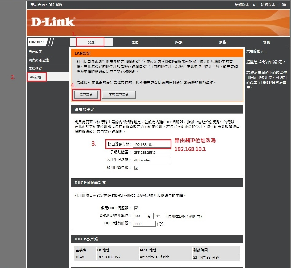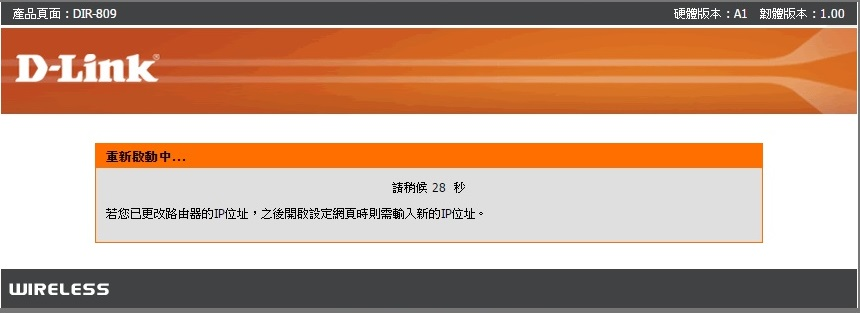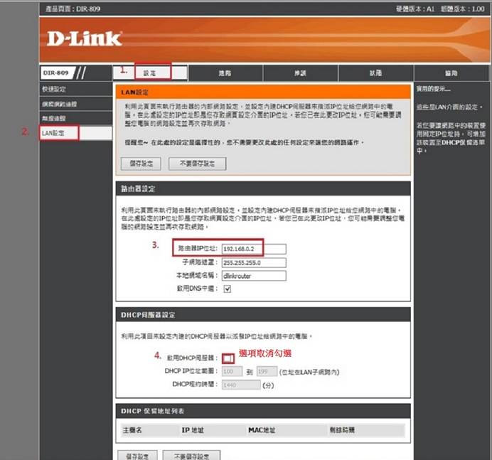 分享器設定中更改DIR-809 分享器IP位址