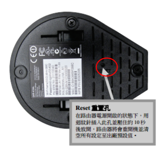 設備底部介紹:RESET孔(回覆原廠預設值,請按壓10-12秒)