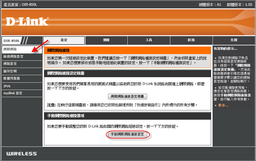 步驟5:登入DIR-850L設定畫面,開始連線設定
