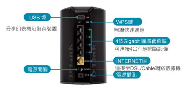 硬體接線方式(ADSL Modem線路接到DIR-850L的INTERNET埠,電腦的網路線接到LAN埠1~4其中一個)