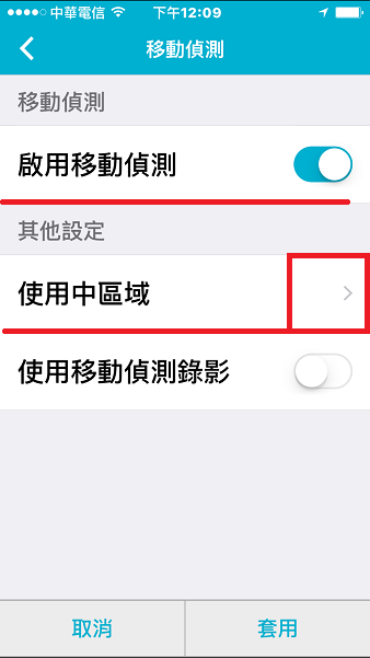 8、開啟 啟用移動偵測 。並點選使用中區域