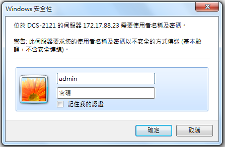1、用電腦登入攝影機的設定畫面,使用者名稱預設為「admin」無密碼